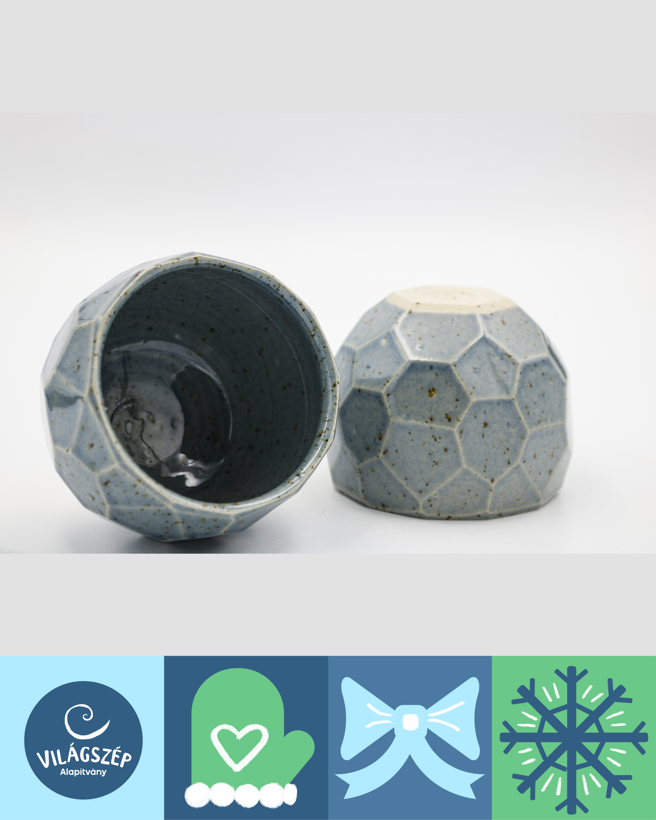 2 db Kezemura által készített, kézzel korongozott és vágott csésze, kívül-belül magasfényű mázzal. Űrtartalom: 250 ml Magasság: 75 mm Átmérő: 90 mm Súly: 190 g